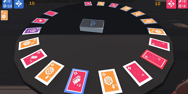 The objective of the card selection round is to increase the odds of your opponent shooting themselves while decreasing your own odds. The positive effect cards are applied to yourself while the negative effect cards are automatically applied to your opponent.